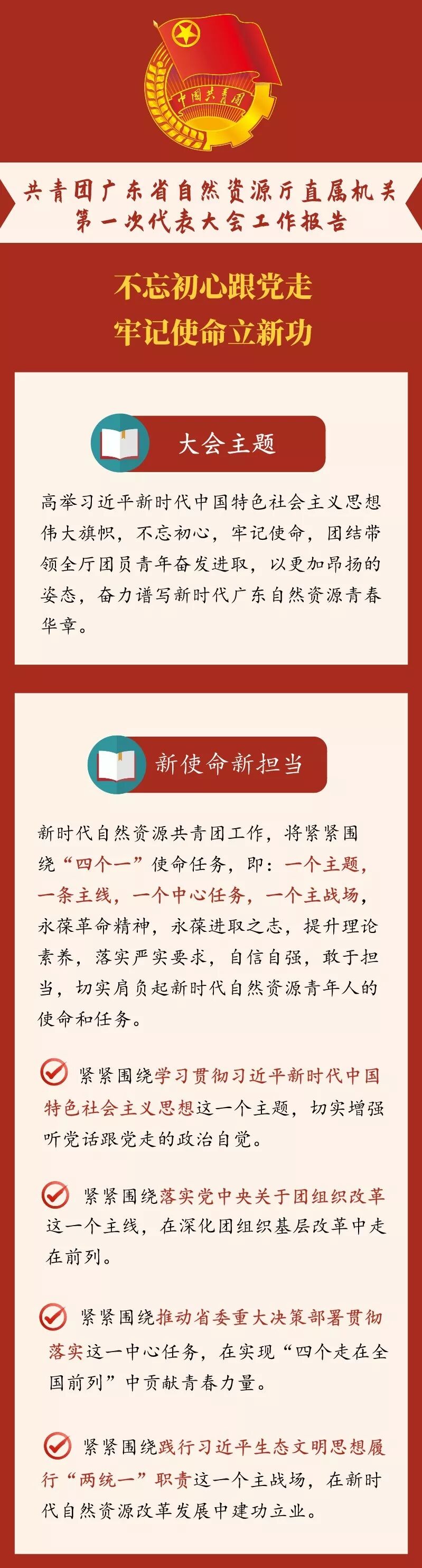 预备会议阶段,全体代表先后表决通过了《共青团DB电子游戏官网直属机关第一次代表大会筹备工作报告》《共青团DB电子直属机关第一次代表大会代表资格审查小组关于代表资格的审查报告》《共青团DB电子游戏官网直属机关第一次代表大会主席团人员名单和大会秘书长人员名单》《共青团DB电子游戏官网直属机关第一次代表大会议程》。 大会在雄壮的中华人民共和国国歌声中拉开了序幕。大会首先听取并审议了共青团DB电子游戏官网直属机关第一次代表大会工作报告。 报告总结和回顾了三年来共青团的主要工作,深刻分析了当前共青团工作面临的新形势、新要求,并提出了今后五年全厅共青团工作的总体要求和主要任务,明确了新时代新使命。 报告指出,三年来,团员青年们积极融入波澜壮阔的发展大潮,奋力与新时代同行,把围绕中心服务大局作为工作主线,勇于担当,奋发作为,在我省自然资源改革发展新征程中展现了青春风采、奉献了青春力量。 报告明确了新时代自然资源共青团工作,将紧紧围绕“四个一”使命任务,即:一个主题,一条主线,一个中心任务,一个主战场,切实肩负起新时代自然资源青年人的使命和任务。